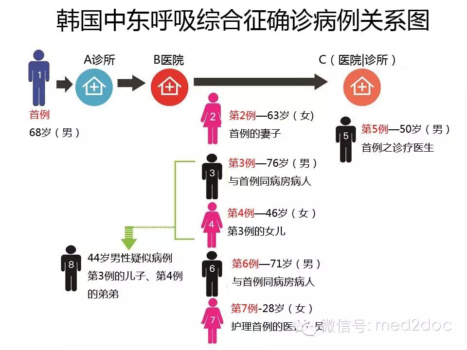 20日韓國(guó)出現(xiàn)首起病例,該名68歲的男性曾前往沙特阿拉伯、巴林等中東國(guó)家,返國(guó)后出現(xiàn)發(fā)熱、咳嗽等癥狀,隨后確診為MERS。陸續(xù)又傳染給妻子、同住一個(gè)病房的患者、同住患者的女兒以及幫他診療的醫(yī)生。截至27日為止已經(jīng)發(fā)現(xiàn)5起確診病例。28日又爆出與確診患者有過(guò)密切接觸的44歲男子,已于26日進(jìn)入中國(guó)大陸。28日?qǐng)?bào)道,廣東出現(xiàn)首例輸入性中東呼吸綜合征(MERS)疑似病例。