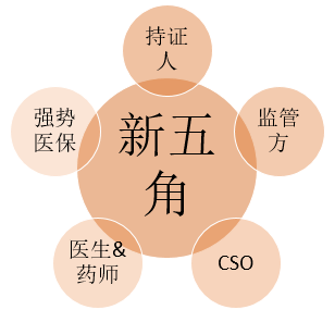 政策的變革帶動(dòng)了參與者的變革,中國(guó)的醫(yī)藥市場(chǎng)變更為“新五角”,從合作變成了博弈。