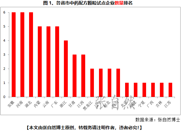 據(jù)本人不完全統(tǒng)計(jì),截至目前,全國(guó)已獲得各類中藥配方顆粒試點(diǎn)資質(zhì)的企業(yè)高達(dá)57家,分布在19個(gè)省市,其中,《征求意見稿》出臺(tái)之前獲批的國(guó)家級(jí)試點(diǎn)6家、省級(jí)試點(diǎn)2家,《征求意見稿》出臺(tái)后,各省市以科研專項(xiàng)、試點(diǎn)研究、臨床試點(diǎn)、技改專項(xiàng)等多種名義批準(zhǔn)的試點(diǎn)49家。