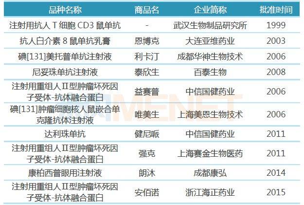 表3:已獲批上市的國(guó)產(chǎn)抗體類藥物