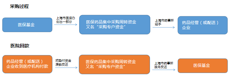 2、上海市藥事所代表醫(yī)療機構(gòu)與中選企業(yè)及其指定的藥品經(jīng)營(或配送)企業(yè)簽訂三方購銷協(xié)議,從本市藥品采購專戶墊付中選品種貨款;采購專戶資金由上海市醫(yī)保經(jīng)辦機構(gòu)根據(jù)上海市藥事所提供的集中采購結(jié)果,按照購銷協(xié)議執(zhí)行的工作進度,以“醫(yī)保藥品集中采購周轉(zhuǎn)資金”形式從醫(yī)?;饎澽D(zhuǎn)。