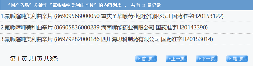 國家藥監(jiān)局網(wǎng)站數(shù)據(jù)庫顯示,氟哌噻噸美利曲辛片目前有4個批號,進口產(chǎn)品為丹麥靈北制藥的黛力新,3家國內(nèi)生產(chǎn)企業(yè)分別為重慶圣華曦藥業(yè)股份有限公司、海南輝能藥業(yè)有限公司、四川海思科制藥有限公司。