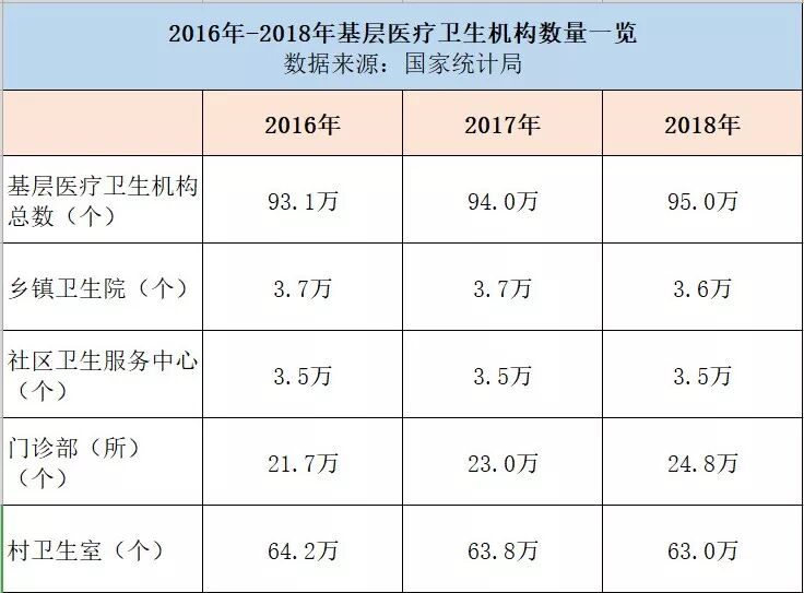 根據(jù)國(guó)家統(tǒng)計(jì)局發(fā)布的最新數(shù)據(jù),與2017年相比,2018年基層醫(yī)療衛(wèi)生機(jī)構(gòu)數(shù)量增加了1萬(wàn)個(gè),其中門診部(所)增加量達(dá)到1.8萬(wàn)個(gè);村衛(wèi)生室減少0.8萬(wàn)個(gè),基層醫(yī)療衛(wèi)生機(jī)構(gòu)格局正在發(fā)生巨變。