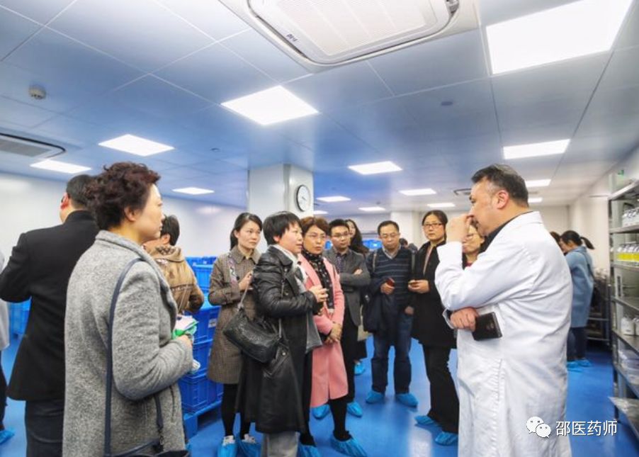 會后,張建中主任帶領與會人員實地參觀了中山醫(yī)院PIVAS,介紹了各功能區(qū)設置及日常工作流程,并就PIVAS運營中人和機器的管理以及流程的優(yōu)化等問題和大家做了詳細交流。