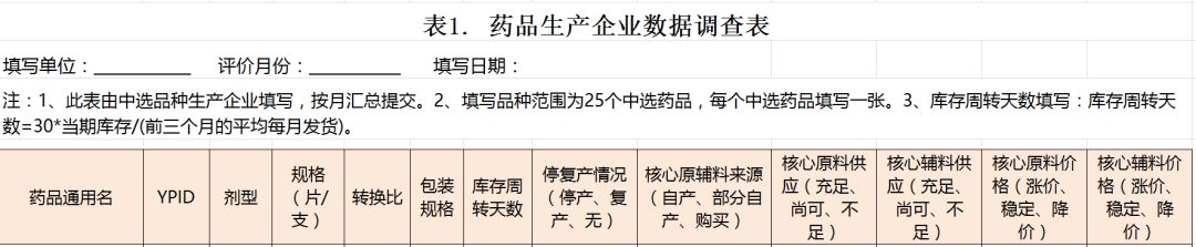 生產(chǎn)企業(yè)需要報(bào)送的數(shù)據(jù)包括庫(kù)存周轉(zhuǎn)天數(shù)、停復(fù)產(chǎn)情況、核心原料價(jià)格、核心輔料價(jià)格等,從以上報(bào)送數(shù)據(jù)要求可以看出,國(guó)家密切關(guān)注中選藥品的供應(yīng)與價(jià)格變動(dòng)情況。