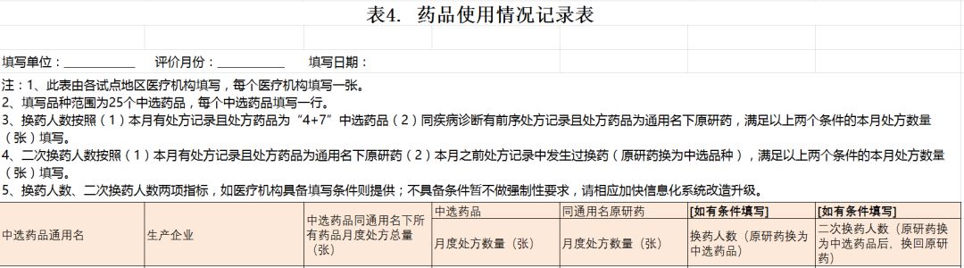針對(duì)藥品使用情況,需要統(tǒng)計(jì)中選藥品的月度處方數(shù)量,同通用名原研藥月度處方數(shù)量,換藥人數(shù)(原研藥換成中選藥品),二次換藥人數(shù)(原研藥換回中選藥品后,再換回原研藥)等指標(biāo)。