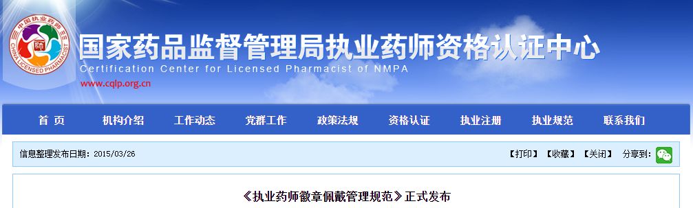 早在2015年03月26日,國家藥品監(jiān)督管理局執(zhí)業(yè)藥師資格認(rèn)證中心就曾發(fā)布《執(zhí)業(yè)藥師徽章佩戴管理規(guī)范》,其中表示,徽章的設(shè)計(jì)、監(jiān)制與發(fā)放均由國家食品藥品監(jiān)督管理總局執(zhí)業(yè)藥師資格認(rèn)證中心負(fù)責(zé)。標(biāo)志著執(zhí)業(yè)藥師隊(duì)伍正朝著“可晉升”的方向發(fā)展,對(duì)形成完善的行業(yè)體系具有極大意義。