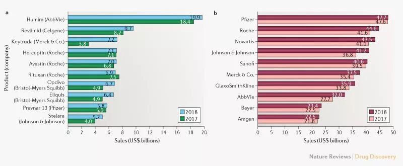 近日,科學(xué)期刊《自然綜述:藥物發(fā)現(xiàn)》(Nature Reviews Drug Discovery)通過官網(wǎng)發(fā)布了2018年全球十大暢銷藥和以銷售額為標(biāo)準(zhǔn)的制藥公司十強(qiáng)榜單。