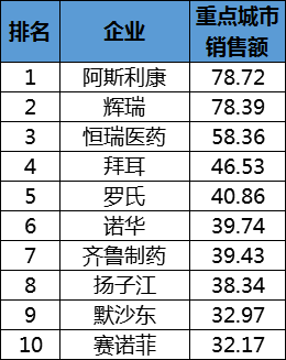 從公司排名看,輝瑞、羅氏、諾華、強(qiáng)生、賽諾菲以超400億美元的年銷售占據(jù)前五。