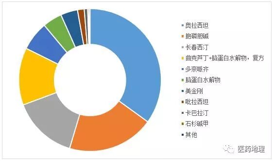 目前,國內(nèi)批準(zhǔn)用于阿爾茨海默癥的藥物主要是γ-氨基丁酸(GABA)類促智藥。代表藥物即奧拉西坦,市場占有率為35%。