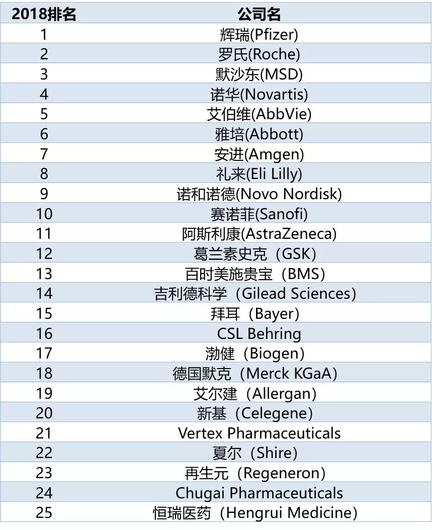 全球25大藥企排名新鮮出爐,它們的這些進展你都知道嗎?