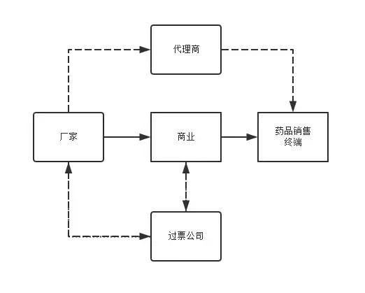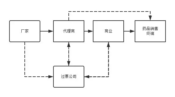 除了以上三大環(huán)節(jié)外,過票公司則是醫(yī)藥生態(tài)圈處于隱秘狀態(tài)下但不可或缺的一環(huán),替廠家及代理商完成了發(fā)票高開及現(xiàn)金回籠的重要職能。如下圖所示