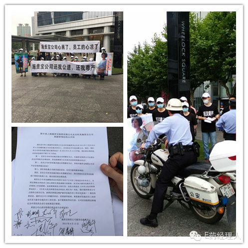 法官在庭上不解地問:“BMS為什么就不能讓員工開開心心地走呢?”月15日上午8點(diǎn)50分,21名“全副武裝”的人士出現(xiàn)在上海施貴寶會(huì)德豐大樓門前。他們頭戴白帽、臉帶口罩,身穿的黑色T恤上印著“抗議裁員”、“施貴寶還我公道”,手持“施貴寶公司還我公道,還我尊嚴(yán)”等字樣的橫幅和“強(qiáng)烈抗議BMS惡意非法解除三期員工”等字樣的易拉寶。這樣場(chǎng)景是否讓人覺得似曾相識(shí)?他們就是在2014年7月至2015年4月被BMS被裁掉的總監(jiān)、大區(qū)經(jīng)理、地區(qū)經(jīng)理們。