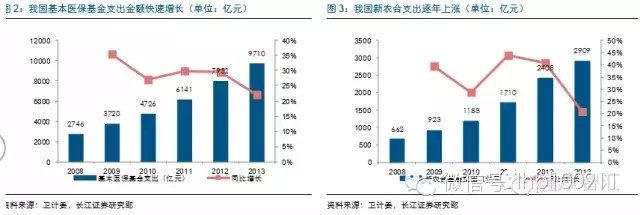 近年來,我國各地醫(yī)保基金紛紛宣告吃緊,5年內(nèi)醫(yī)?;鹬С鲈鲩L近4倍,新農(nóng)合人均籌資及支出也逐年增長。我們認(rèn)為,其內(nèi)在原因主要有三點,即我國全民醫(yī)保的制度體系、人口老齡化日趨嚴(yán)重、醫(yī)院過度治療。