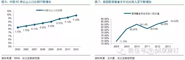 第二、我國人口老齡化加速,醫(yī)保基金收支平衡壓力日益凸顯。我國自2001年開始進(jìn)入老齡化社會,即65歲以上人口比例超過7%,且老齡化速度快于世界平均水平。據(jù)聯(lián)合國預(yù)測,到2020年中國老齡人口將達(dá)1.67億人,約占全世界老齡人口6.98億人的24%。而由于老齡人口一方面病癥高發(fā)增加醫(yī)療剛需,另一方面不再繳納五險一金,意味著我國醫(yī)保基金將入不敷出,未來壓力倍增。
