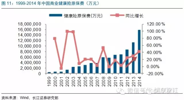 2000年以來,我國商業(yè)健康險年均增速約25%,而2014年增速提升至41%,市場規(guī)模達(dá)1587億元,5年內(nèi)達(dá)到萬億級別已成市場共識??梢钥吹?,在鼓勵政策放風(fēng)后,我國商業(yè)健康險市場已駛?cè)肟燔嚨?,是從根本上改善我國醫(yī)療支付格局的唯一途徑。