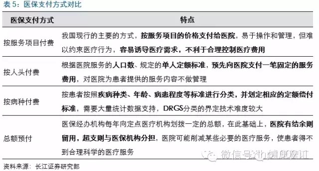 我國醫(yī)??刭M的主要形式分為四種,按服務(wù)項目收費、按病種付費、按人頭付費、總額預(yù)付。其中,按服務(wù)項目收費容易誘導(dǎo)過度醫(yī)療,按人頭付費和總額預(yù)付均屬于預(yù)付制,容易引發(fā)必要的醫(yī)療服務(wù)不足。我們認(rèn)為,按病種付費將患者按病種、病患程度、年齡等精細(xì)化分類,最有望成為未來的主流模式。