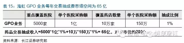 GPO業(yè)務(wù)有望按照藥品交易量抽成,收入空間約65億,對應(yīng)市值空間約200億:海虹自2000年開展醫(yī)藥電子商務(wù)業(yè)務(wù),巔峰時期接入了12000家醫(yī)療機(jī)構(gòu),藥品成交額突破1600億,市占率達(dá)70%。當(dāng)前我國藥品市場年交易量約1.3萬億,在GPO試點不斷推廣的趨勢下,海虹有望重演醫(yī)藥電商的輝煌。而考慮到當(dāng)前醫(yī)藥電商市場競爭加劇,我們僅以海虹計劃深度覆蓋的5000家主流醫(yī)院、10萬家藥店為基數(shù)(全國約40萬家藥店),年交易量有望突破6500億。我們假設(shè)按照1%的比例收取平臺服務(wù)費,公司的GPO業(yè)務(wù)每年收入空間約65億,按照電商平臺平均3倍PS水平,對應(yīng)市值約200億。
