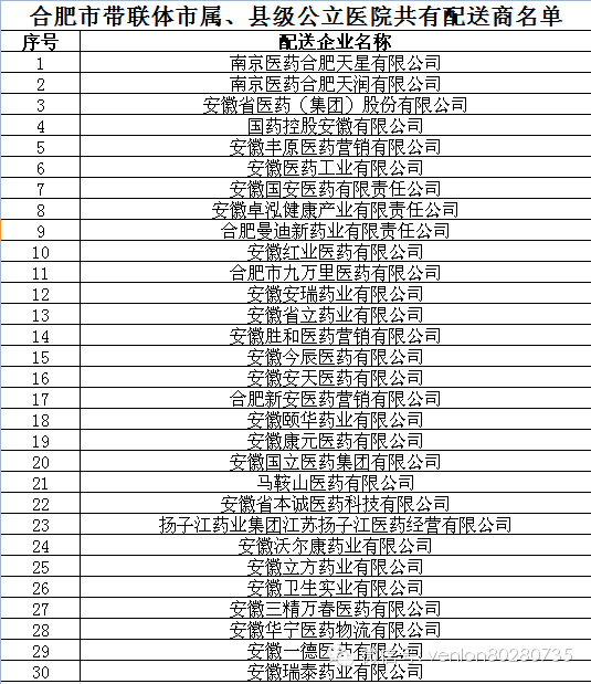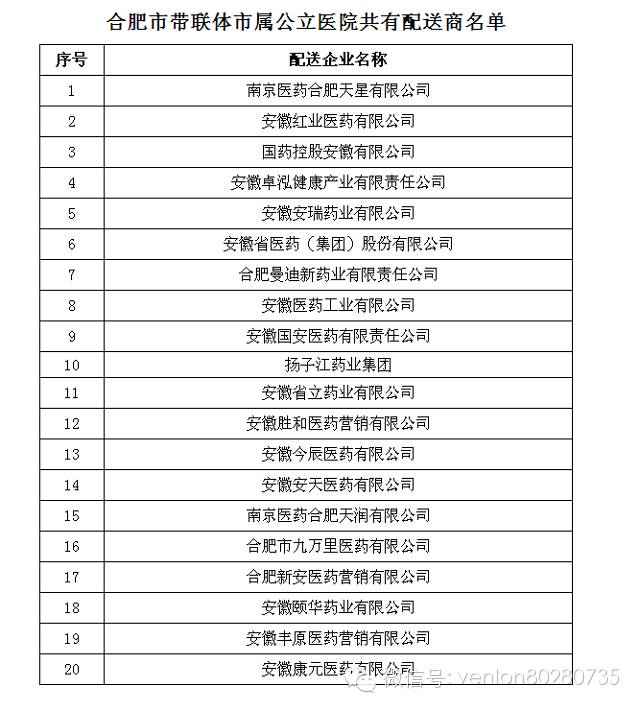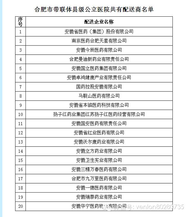 合肥市帶聯(lián)體縣級公立醫(yī)療機構(gòu)配送商