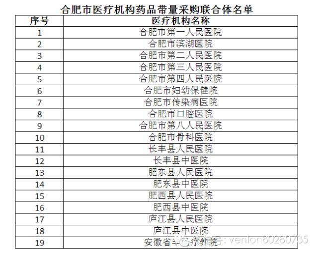 合肥市醫(yī)療機構(gòu)藥品帶量采購聯(lián)合體名單