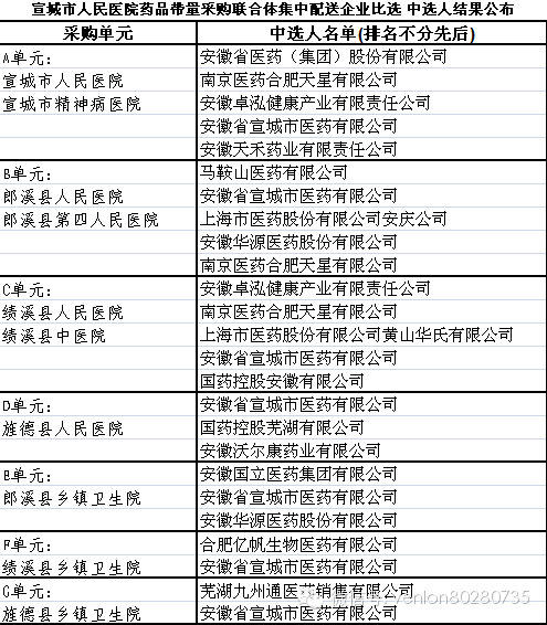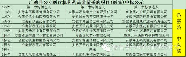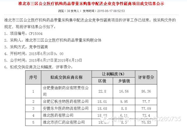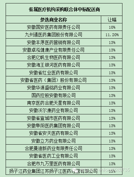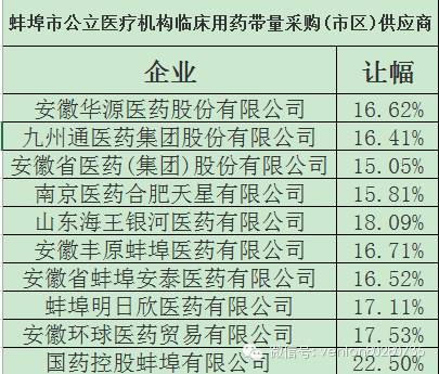 安徽19地市二次議價中標(biāo)結(jié)果匯總