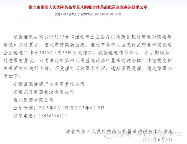 淮北市三區(qū)公立醫(yī)療機構(gòu)配送商