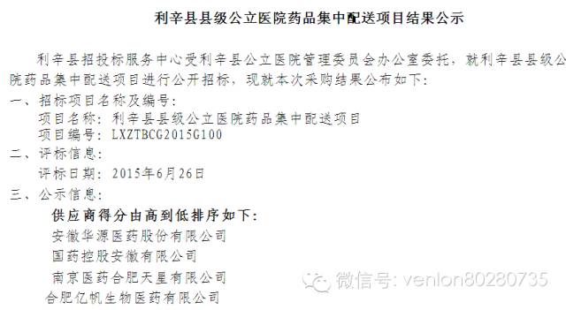 利辛縣公立醫(yī)療機構(gòu)配送商