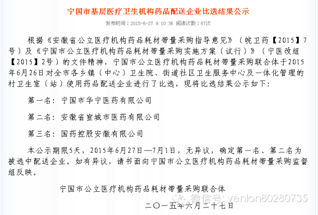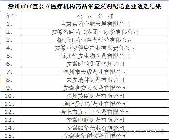 滁州市公立醫(yī)療機構(gòu)配送商