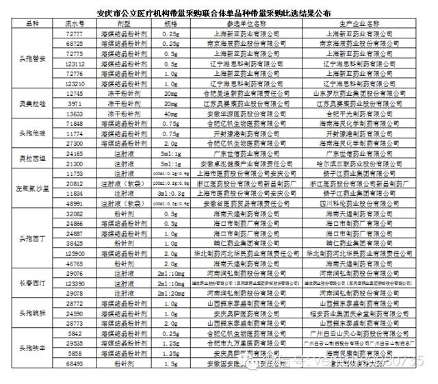 安慶市藥品帶量采購目錄
